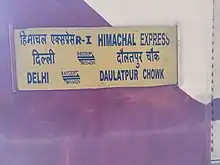 The 14553/54 Delhi–Daulatpur Chowk Himachal Express is an Express train belonging to Indian RailwaysNorthern Railway zone that runs between Delhi Junction & Daulatpur Chowk in Una, Himachal Pradesh, India.