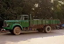There was also the HD tractor unit, a model which was only sold in export markets.[7] Hino trucks began to be imported to Japan in 1954, while the Hino TE (and versions thereof, including the Hino BM bus) entered production in Myanmar in 1965.[8] This was part of Japanese war reparations to then-Burma.[9] Manufacture was carried out by MADI (Myanmar Automobile and Diesel Engine Industries) in the "No 2 Automobile Industry" plant in the small town of Tonbo, at Kwinhla Station, Pandaung Township, Bago Division (just north of Yangon), where MADI also assembled the Mazda Pathfinder and the DS-70 engine for the trucks.[10]