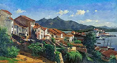 In 1883, he had his first exhibition at the Juiz de Fora City Hall.[1] Later that same year, he and several others withdrew from the Academy to go to Niteroi with Grimm, where they established an outdoor school devoted to plein-air painting. Among his associates there were Giovanni Battista Castagneto, Antônio Parreiras, Domingo García y Vásquez and Grimm's friend from Germany, Thomas Georg Driendl.