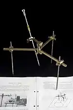 The Hirtz compass is a medical device previously used to determine the location and aid the removal of bullets and shrapnel in a patient's body.[1][2] The device would be used by a surgeon who would, with the help of x-ray photographs, precisely remove the foreign object.[2] The device would usually give a location within 1 or 2 millimeters of the foreign object.[3] At its peak, the average rate of projectile removal when the device was used by local surgeons reached approximately 90%.[4] The device was extensively used during World War I.