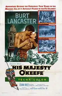 His Majesty O'Keefe is a 1954 American adventure film directed by Byron Haskin and starring Burt Lancaster. The cast also included Joan Rice, André Morell, Abraham Sofaer, Archie Savage, and Benson Fong. The screenplay by Borden Chase and James Hill was based on the novel of the same name by Laurence Klingman and Gerald Green (1952).[3]