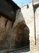 Hisar Kapia (from Turkish: Hisar Kapı meaning "Castle Gate") is a medieval gate in Plovdiv's old town and one of the most famous tourist sights in the city. The gate was built in the 11th century AD over the foundations of a gate from Roman times (probably from the 2nd century AD). Hisar Kapia is one of the three entrances (Eastern, Northern and Southern) to the acropolis of ancient Plovdiv. During the rule of the Ottoman empire revival houses were embedded in the remains of the old stone walls around the gate.[1]