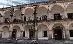 The San Miguel earthquake damaged the city considerably, to the point that some rooms and walls of the Royal Palace were destroyed. There was also a partial abandonment of the city, food shortages, lack of manpower, and extensive damage to the city infrastructure, not to mention numerous dead and injured.[24] These earthquakes made the authorities consider moving to a new city less prone to seismic activity. City residents strongly opposed the move, and even took to the Royal Palace in protest; in the end, the city did not move, but the number of troops of the Army Battalion required to maintain order was considerable.[10] The damage to the palace was repaired by Diego de Porres, who finished repairs in 1720, although there are indications that there was additional work done by Porres until 1736.[10]