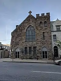 In addition to St. Wenceslaus church, there have been two other churches in Baltimore that have specifically catered to Baltimore's Czech Christian community. Both of these churches, the Mount Tabor Bohemian Methodist Episcopal Church and the Bohemian and Moravian Presbyterian Church, were established for the Protestant minority.[23] Mount Tabor, a Methodist Episcopal church, was located at 629 North Washington Street and is now home to a black Baptist church called New Pilgrim Baptist Church.[26] Beginning in the 1880s, Mount Tabor's services were held at the former Appold Methodist Episcopal Church at 2001 East Chase Street near Washington Street, before moving to their location at 629 North Washington.[92] The Czech Presbyterians first organized a congregation in 1890, first holding services at Faith Chapel on Broadway just north of Shimek's Bohemian Hall. By 1898, the Presbyterians had raised enough funds to build their own church, the Bohemian and Moravian Presbyterian Church, on Ashland at the intersection with Washington Street.[92][36] In 1947, the Bohemian and Moravian Church was sold to a black congregation, becoming the Freedom Temple AME Zion Church. In 2016, Johns Hopkins Hospital purchased the building and subsequently demolished it to make way for a medical-related facility.[93]
