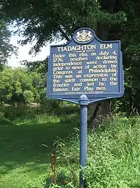 The Fair Play Men were illegal settlers (squatters) who established their own system of self-rule from 1773 to 1785 in the West Branch Susquehanna River valley of Pennsylvania in what is now the United States. Because they settled in territory claimed by Native Americans, they had no recourse to the Pennsylvania colonial government. Accordingly, they established what was known as the "Fair Play System," with three elected commissioners who ruled on land claims and other issues for the group. In a remarkable coincidence, the Fair Play Men made their own declaration of independence from Britain on July 4, 1776, beneath the Tiadaghton Elm on the banks of Pine Creek.[1]