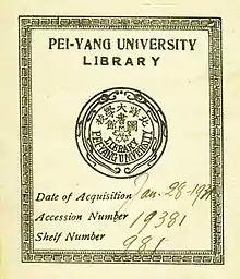 - ↑ 张昉、王莉、张泽英 (2007-11-15). ""北洋大学堂"若干史实百年新考". 天津大学学报(社会科学版). 2007 (6).