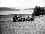An increasing American settler presence in Washington Territory caused simmering tensions and conflicts between the Native American tribes and white settlers, many miners en route to seek fortune in the gold fields in the Colville district.[17] These conflicts and reprisals eventually prompted intervention from the United States Army on October 5, 1855, starting the Yakima Indian War.[17] The last campaign of this war, the Coeur d'Alene War, was brought to a close by the actions of Col. George Wright, who won decisive victories against a confederation of tribes in engagements at the Battle of Four Lakes and the Battle of Spokane Plains,[18] avenging an earlier loss under Lt. Col. Edward Steptoe at the Battle of Pine Creek.[19] Wright's actions ended the hostilities and opened the mountain valley of the Pacific Northwest to safe habitation by settlers.[19][20]