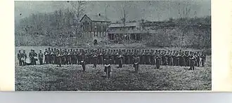 From June 28 until June 30, 1781, during the American Revolutionary War, units of the French army, called Lauzun's Legion or Hussars, encamped in North Stratford, now Trumbull.[39][40][41] The Legion was commanded by Colonel Armand Louis de Gontaut-Biron, duc de Lauzun, and marched 15 miles (24 km) to the south to protect the flank of the main French army encamped in Newtown.[42] The army was marching in the Washington–Rochambeau Revolutionary Route south to reinforce American troops under the command of General George Washington at the Siege of Yorktown.[43]