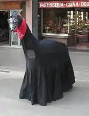 The Santa Tecla Festival takes place at Tarragona from 15 to 24 September and includes the saint's day, 23 September.[52] A number of animals, real and mythical, are impersonated in the parades that form a major part of the festivities. Among them is a larger-than-life Mulassa (mule) carried by two dancers who are hidden under its skirts, apart from their legs.