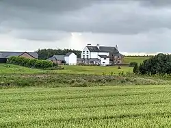 This late 15th- or early 16th-century farmhouse was enlarged in the 18th century and later centuries. It preserves mullion windows, some timber eaves gutters, and a large chimney stack, as well as some interesting interiors.[2][3]