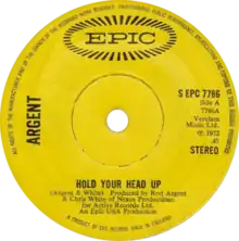 "Hold Your Head Up" is a song by the English rock band Argent, first released as a single in 1971. The song was a Top 5 hit in the US, the UK, and the Canadian charts, peaking at No. 5 in all three countries. However, it was the band's only song to chart on the Billboard Hot 100.[2] Billboard ranked it as the No. 50 song for 1972. The song appeared on the third Argent album All Together Now (1972).