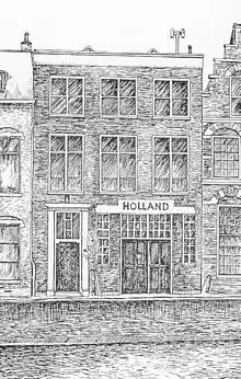 After having worked a few years as a sales representative for several publishing houses Jan Berhard van Ulzen established his own publishing business at his home address. The first publications were financed by his wife who had been a successful fashion cutter in Paris. After a few years the business could be located on the canal Herengracht in Amsterdam. In these years Holland specialized in social, Christian publications by original Dutch writers. A few translations were published, for instants (1937) Søren Kierkegaard,[2] (1951) Pär Lagerkvist,[3] and (1940) Denis de Rougemont.[4] Next to books Holland also published a Christian literary magazine called Opwaartsche Wegen,[5] which was published for 17 years.[6] Poetry was published since 1950 in a series called De Windroos[7]