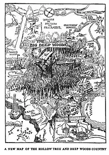 J. M. Condé's map of "Big Deep Woods" in Albert Bigelow Paine's Hollow Tree Nights and Days, 1915.