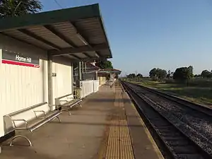 Home Hill railway station is on the North Coast line in Queensland, Australia, serving the town of Home Hill. It has one platform, with a passing loop across from it.