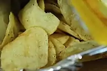 Honey Butter Chips (허니버터칩) (also known as 허니버터칩 in Korea, ポテトチップスしあわせバター, Happiness Butter Potato Chips in Japan)[1] is a brand of fried potato chips manufactured by Haitai Calbee and sold in South Korea. The snack were first available in August 2014, and they are renowned for their rise to popularity through SNS (Social Network Services) viral marketing from late 2014 to early 2015. The company behind this creation was Korean Haitai in a joint effort with Japanese snack manufacturer Calbee. This snack was so popular that it created a trend called the Honey-Butter Craze among South Koreans.[2]