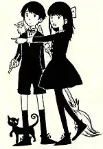 Author Míriam Bonastre Tur first sketched main characters Dani and Dorian Wytte, then unnamed, as part of an Inktober challenge in early 2014.[2] At the time, she was at student at Escola Joso, an art school in Barcelona.[1] Finding them enjoyable to draw, she became "obsessed with them" and drew them repeatedly throughout the month of November. Eventually, Bonastre Tur decided to come up with a story for the characters. One of her earliest ideas for the story was the premise: two magical kids missing the bus for school and eventually becoming embroiled in an evil plot.[2] A few weeks later, she had developed the main characters and their relationships, the major plot beats and twists, and a complete loose structure of the story.[3] Some early panels were drawn as class assignments.[4] The character of Carlo, a frog who spits fire, was inspired by and named after a friend of Bonastre Tur. When writing Hooky, she felt bad about making Dorian lose his dragon egg, and Carlo, a classmate, suggested she give him a pet "dragon frog" to make up for it.[5]