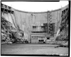The dam is 660 feet (200 m) long, 300 feet (91 m) high and was built between 1924 and 1927. The dam includes three conventional hydroelectric generating units totaling 32 megawatts (MW) and a pumped-storage unit with a capacity of 97 MW.
