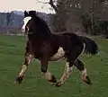 The horse body mass is always 65-75 % water.[1] The horse is considered a "thin animal" (with little fat), whose weight is divided into approximately 11 % bone, 50 % muscle and 9 % fat;[2] but a large number of factors influence its weight. Some breeds (draft horses) are naturally heavier than others (ponies), and differ in size and bone structure, so the weight range of horses is highly variable. Ponies can weigh less than 200 kg and heavy horses more than a ton,[3] while the average weight of a saddle horse is estimated at around 500 kg. Champion show-jumper Jappeloup de Luze, for example, weighed around 470 kg.[4] Heavy horses bred for slaughter reach particularly high weights, as it's in the breeder's interest to get maximum meat weight out of them.[5]
