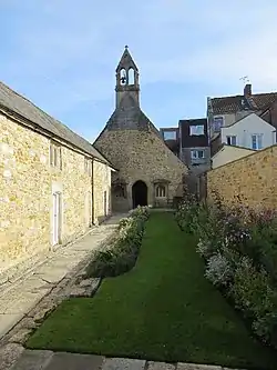 The hall roof was removed and the cubicles on each side converted into individual dwellings, or cells, leading to the chapel.[2] In the early 17th century the almshouses were described as "ruinous" and by 1703 the chapel had lost its roof.[4]