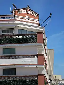 Hotel Rosita is a historic hotel in 5 de Diciembre, Puerto Vallarta, in the Mexican state of Jalisco. The 115-room hotel is among the city's oldest, built in 1948.[1] According to Fodor's, "It's still a viable budget option, mainly recommended for its location on the north end of the malecón close to restaurants and shops. Rooms are very basic; expect white-tile floors and fabrics with floral prints. The cheapest quarters have no air-conditioning."[2]
