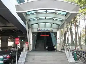 The station is a three-level, elevated station with two Side platform and three exits.[2] It is 153 meters long and is located near the intersection of Jiachang Rd. and Haijhuan Rd.[3]