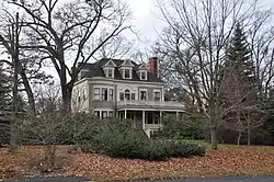The House at 22 Parker Road is one of a few high style Colonial Revival houses in Wakefield, Massachusetts. The 2+12-story wood-frame house is estimated to have been built in the 1880s. It has a hip roof, corner pilasters, and gable end dormers, the center one having a swan-neck design. The main facade is divided into three sections: the leftmost has a rounded bay with three windows on each level, and the right section has a Palladian window configuration on the first floor, and a pair of windows on the second. The central section has the front door, sheltered by a porch that wraps around to the right side, flanked by sidelights and topped by a fanlight. Above the front door is a porch door flanked by wide windows and topped by a half-round window with Gothic style insets.[2]
