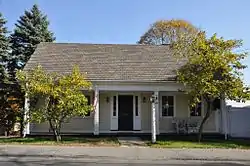 The House at 269 Green Street in Stoneham, Massachusetts is a well-preserved Greek Revival cottage with unusual layout. Unlike most small Greek Revival houses, the roof slope faces front, and shelters a cutaway porch supported by square Tuscan columns. Built c. 1810, it has typical Greek Revival features, including corner pilasters and an entry framed by sidelight windows. Several houses of this type were built in Stoneham; this one is the best-preserved.[2]