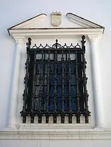 The house exercised an important artistic patronage. Examples of this, in the architectural field, are the Palace of Medina Sidonia in Sanlúcar de Barrameda,[19] the Palace of the Counts in the city of Huelva, the Palace of Medina Sidonia in Seville (now demolished)[20] the Monastery of San Isidoro del Campo in Santiponce, the Monastery of Dominicas de Madre de Dios in Sanlúcar, the Convent of Santo Domingo in Sanlúcar, the Sanctuary of Nuestra Señora de la Caridad Coronada in Sanlúcar, the Convent of La Merced in Sanlúcar, the Castle of Santiago, the Castles of Niebla, Trigueros and Barbate, the Castle of Zahara de los Atunes and Palace of Jadraza and a long etcetera. As for painting and sculpture, the works commissioned to Francisco Juanete and Francisco de la Gándara stand out. Likewise, the works of silverware by Luis Sánchez and Jacques de Uparque, and the sons of the latter Juan and Pedro.[21] In the literatio, the Tarifa exploit of Guzmán el Bueno has been the subject of numerous works, among them the one written by Tomás de Iriarte. Attributed to Cervantes, the Soneto a la entrada del duque de Medina en Cádiz, is dedicated to the 7th Duke. Góngora dedicated his Fábula de Polifemo y Galatea to the Count of Niebla.