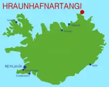 Hraunhafnartangi (Icelandic pronunciation: [ˈr̥œynˌhapnarˌtʰauɲcɪ]) is the second northernmost point of mainland Iceland and was believed to be the northernmost point until 2016 when it lost that title to the close by Rifstangi which was found to exceed it by 68 metres.[1] It is notable for the Hraunhafnartangi Lighthouse.[2]