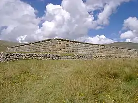Huánuco Pampa,[1][2][3] Huánuco Marka[3][4] (also spelled Huánuco Marca)[1] or Huánuco Viejo,[1][3] or Wanuku Pampa is a large archaeological site in Peru in the Huánuco Region, Dos de Mayo Province, La Unión District. The ruins of the city lie on a plateau above the Urqumayu or Vizcarra River in the central Andes.[5] The Incas administered their large empire through a small number of administrative centers, such as Huánuco Pampa. The administrative centers were linked by the extensive Inca road system. The most important of the roads, the Qhapaq Ñan, which ran from Cusco to Quito, passed through Huánuco Pampa. The Inca authorities in Huánuco ruled at least five, and perhaps more, ethnic groups.[6] The city is situated on an important commercial trade route and sits on top of a plateau with ravines on all sides in order to allow easy defense of the city. During the Spanish conquest of the Incas, Huánuco Pampa was briefly occupied by Gomez de Alvarado,[7] who founded a Spanish city there but it was quickly moved because of the harsh climate and Inca raids of Illa Tupac, one of the captains of Manco Inca.