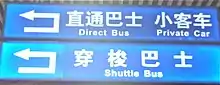Sign at Huanggang port directing to the shuttle bus terminus.