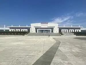 The Huashan North railway station (Chinese: 华山北站) is a railway station located in Huayin, Weinan, Shaanxi, China. There is 5 km from Mount Hua spots, travel bus from there can take you to Huashan visitor center. It was opened on 6 February 2010, along with the Zhengzhou–Xi'an high-speed railway.[1]