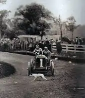 In 1905 he was hired to race French Hotchkiss and Panhard cars, and in several races his wife acted as his riding mechanic.[1]