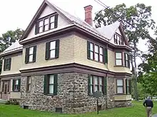 Built ca 1705 for the DuBois family, it might have served as a fortified place for protection for the small community if needed. Originally a smaller 112 story structure, this building was expanded to its current size in the late 1830s. Some historians and antiquarians believe that the presence of "gun ports" made it a fort, but there is no evidence of the presence of any such portholes before the 19th century. The DuBois Fort currently serves as the orientation center and gift shop, as well as a location for special events. Guests can purchase their admission tickets and memberships at this building. Over the last 300 years, it has also been used as a residence and a restaurant.[5]