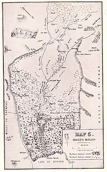 In the 19th century, the valley, mainly marshy ground and a shallow lake, was inhabited by Ghawaraneh Bedouin[7] who wove matting from the papyrus with which they built their homes. John MacGregor, a Victorian adventurer, was captured with his boat, the "Rob Roy", by dark-skinned Bedouin living in the Hula marshes. He was responsible for the first modern maps of the area.[8] Mortality rates were very high due to the spread of malaria. In 1882, a traveler wrote that the region was "among the finest hunting grounds in Syria," home to "panthers, leopards, bears, wild boars, wolves, foxes, jackals, hyenas, gazelles and otters." During World War II, officers of the British Army wrote about hunting birds there.