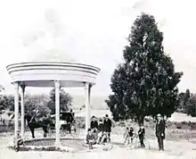 Mr Hume owned the Warwick Estate and surrounding land where a spring was located and adorned with a large stone gazebo that was often visited in summer by wealthy guests from the City of Washington. The famous spring was located in the middle of old Mount Vernon Avenue at or very near the intersection with present-day Reed Avenue but was eventually destroyed for road expansion and commercial development in the area.[5]