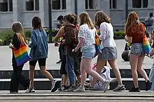 Kamaszpanasz, a young health website, deleted LGBTQ content and re-categorized the remainder as not suitable under 18, even those that simply explained the meaning of "sexual orientation".[46] Content discussing straight sex practices was not removed, neither re-categorized. In June 2021, Eötvös Loránd University Faculty of Humanities posted an LGBTQ booklet on its official Instagram page, only for it to be removed a few days later due to external pressure of the far-right Sixty-Four Counties Youth Movement. The university subsequently argued that they would not be able to republish the LGBTQ booklet as it would be illegal under the anti-LGBT law. Cosmetics company NYX Professional Makeup restricted its Hungarian Instagram page for people under 18 years out of fear they might violate the law due to the occasional presence of rainbow colored makeups and Pride related challenges. International companies such as Coca-Cola, H&M and Levi's have likewise ceased making Hungarian Pride related advertisements since the adoption of the anti-LGBT law.[10]