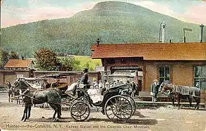 Hunter was a former station on the Hunter Branch of the Ulster and Delaware Railroad (U&D) and was the busiest station on the branch lines of the U&D. Within several yards of the station were the Standard Oil Co. and the Otto Gordon Coal Co. The village of Hunter, which the station serviced, was also home to several popular resorts.