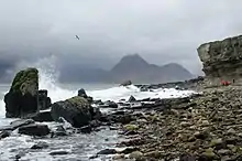 Strong waves from Gonzalo hit the coast of the Isle of Skye, Scotland.