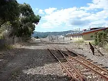 ![]() Hutt Park railway station, looking south. The platform now borders private land and the Hutt Valley Golf Course on the mothballed section of the Gracefield Branch line past the Hutt Workshops. | |