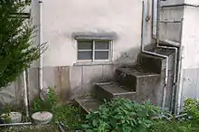 Nurikabe is the word for "plaster wall" in Japanese. This overlaps with the Useless Doorway and Useless Window categories. It refers to a door or window that was meant to be completely sealed up with concrete, but a difference can still be seen between it and the surrounding area.