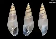 - ↑ Warén, 1994. Warén A., Norris D.R. & Templado J. (1994) Descriptions of four new eulilmid gastropods parasitic on irregular sea urchins. The Veliger 37(2):141-154. Accessed through: World Register of Marine Species at http://www.marinespecies.org/aphia.php?p=taxdetails&id=536283 on 2013-03-13.