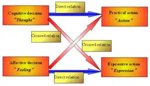 • affective behavior, conducted by cognitive and motivational components;[40]