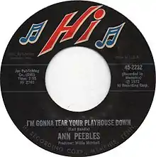 Produced by Willie Mitchell and with performances by the Hi Rhythm Section, Ann Peebles' recording was made at the Royal Studios on South Lauderdale Avenue in Memphis.[1] It was issued as a single on the Hi label in January 1973.[2] It reached no.31 on the US R&B chart,[3] and "bubbled under" the Hot 100, reaching no.111.[4] The track was also included on her 1974 album I Can't Stand the Rain.