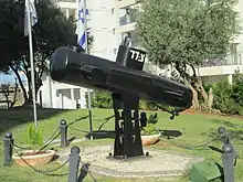 The salvaged conning tower from Dakar outside Haifa's Naval Museum.