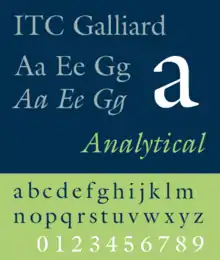 ITC Galliard is the name of a serif typeface designed by Matthew Carter and issued in 1978 by the Mergenthaler Linotype Company.[1]