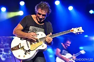 In 2012 he made a guest appearance on the TV soap opera, Neighbours, playing a gig at Charlie's Bar. The episode was broadcast in the United Kingdom in October. In May that year Australian Guitar magazine listed Moss at number-three on their Definitive Top Ten Australian Guitarists of All Time.[56] In January 2013 Moss, as a solo artist, joined the Red Hot Summer Tour, headlining that tour was Barnes.[9] During June Cold Chisel announced they were in a recording studio.[55] Moss followed with his own Australian tour starting in July.[57]
