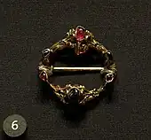 Brooch. Gold, rubies and sapphires, 1250–1300, French or English