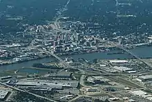 ![]() Illinois River valley, Abraham Lincoln Memorial Bridge, and LaSalle Rail Bridge near LaSalle, Illinois | |