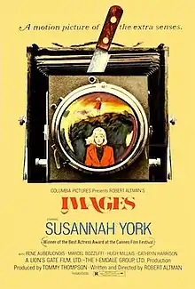 Images is a 1972 psychological horror film written and directed by Robert Altman and starring Susannah York, René Auberjonois and Marcel Bozzuffi. The picture follows an unstable children's author who finds herself engulfed in apparitions and hallucinations while staying at her remote vacation home.